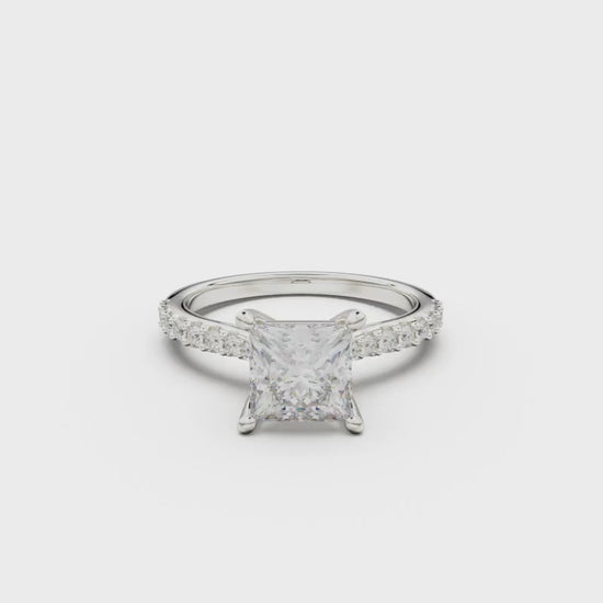 18K White Gold Pavé Cross Over Engagement Ring
