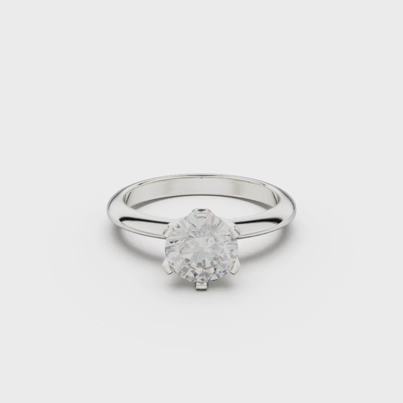 18K White Gold Six Prong Knife Edged Solitaire Engagement Ring